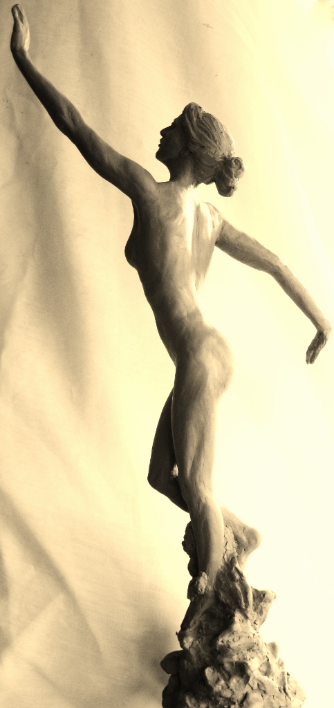 “Sweet Surrender”, bronze, 17″ tall.“Towards the Light”, Clay, 9 ‘ tall“Buddha” clay, 14″ tall“The Divine Mother”, bronze, 9″ tall“Lady Portia, Goddess of Justice”, bronze fountain, life-size, Maplewood, MN, 1987…my first sculpture and the life-changing moment of career transition from architectural designer to sculptor and artist. (photo by Dave Hrbacek)“Release” , clay 17″ tallClay studies: “The Muse of Dance, 17″……”The Muse of Poetry”, 14″……”The Muse of Tragedy”, 18″“Maximus Ursus”, Bronze, 16″, for Beast Coins“Eat Your Vegetables”, bronze and granite, 8.5″ bird wingspan, for a Minnesota garden“Japanese Sage”, Limestone, 18″ tall, for a Japanese garden with tea house, Minneapolis, MN“Butterfly Fairy” , 1994, Limestone with bronze butterflies, 30″ tall, Duluth, MN